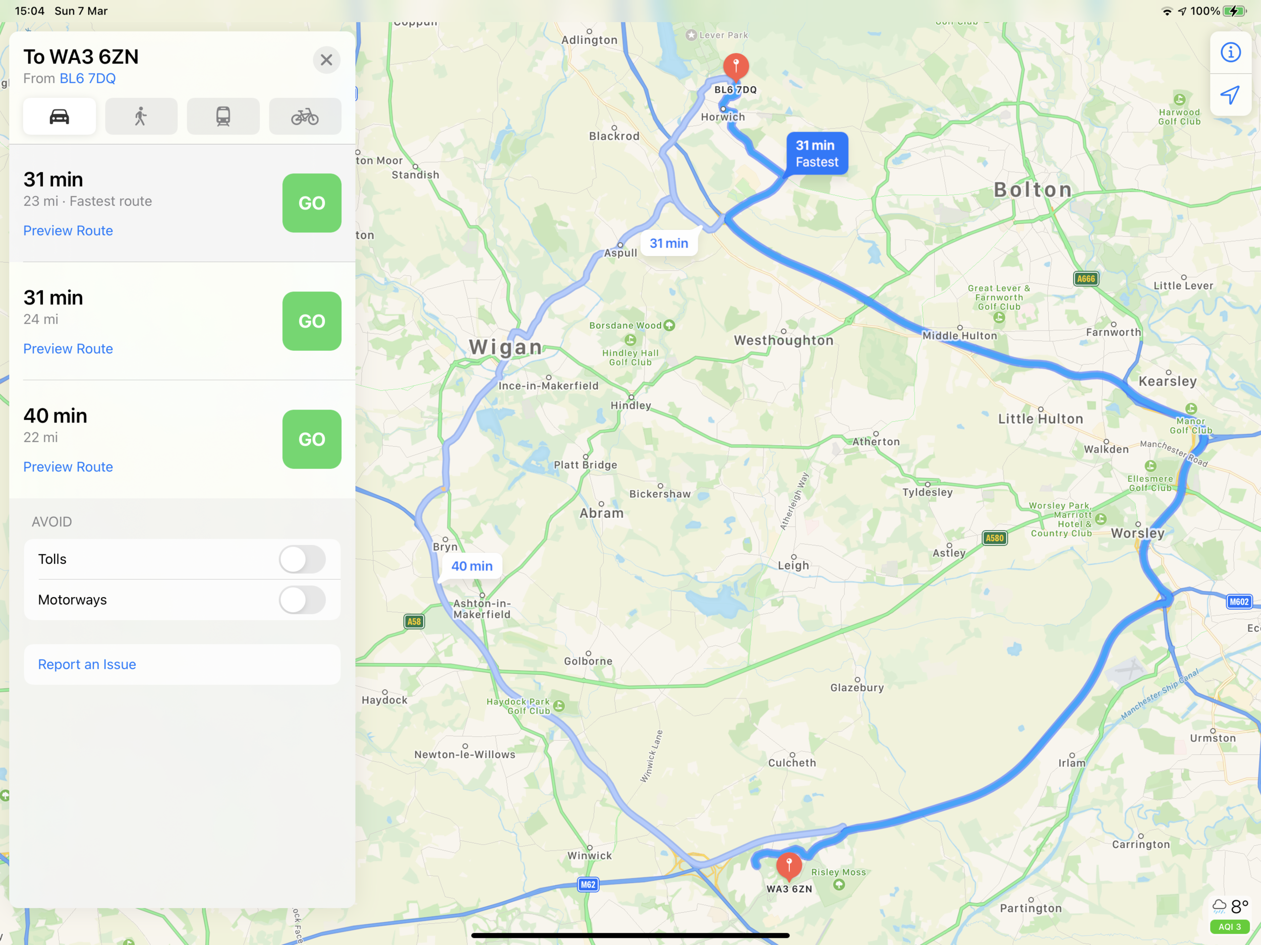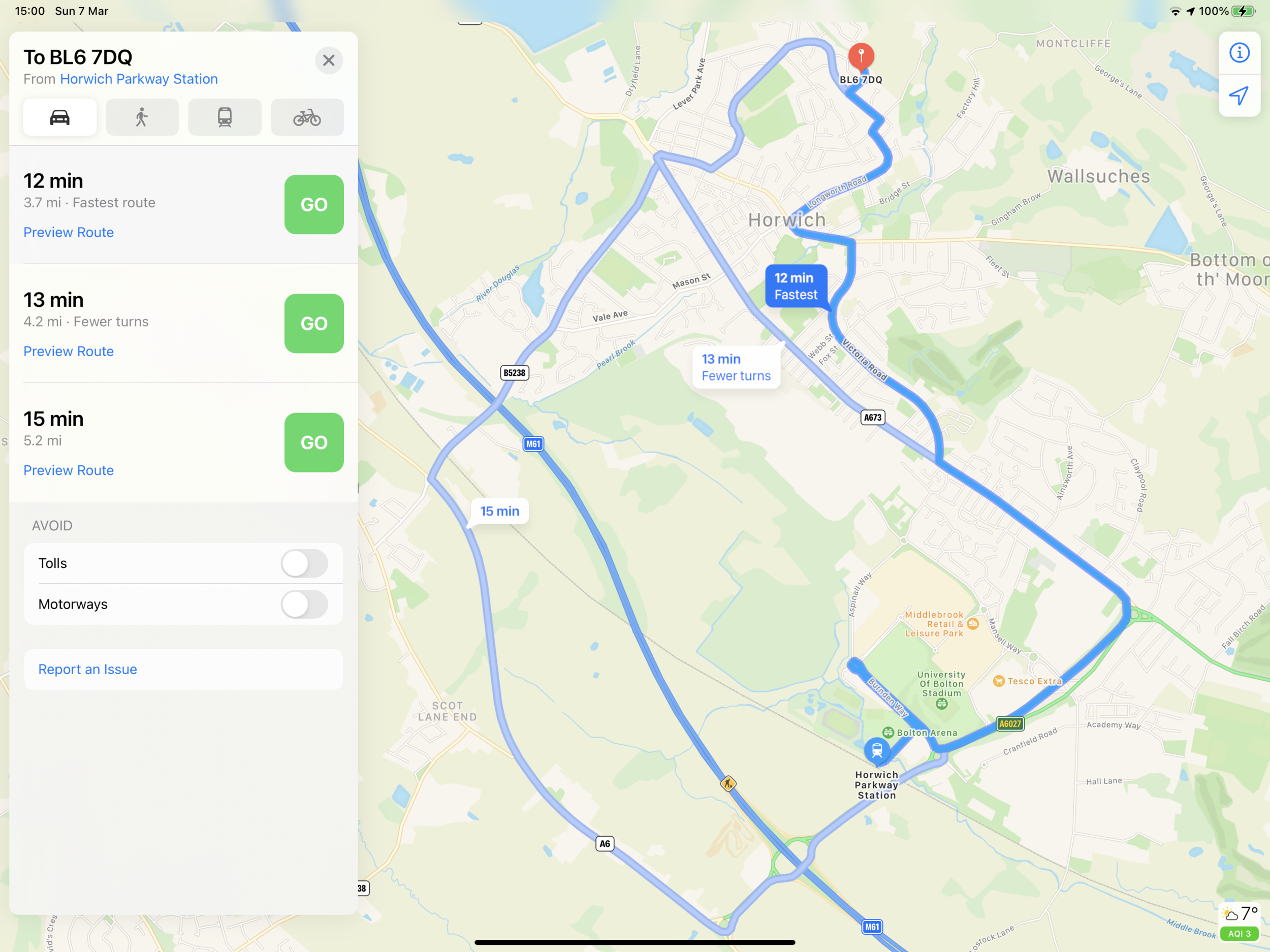 A GMAL of 4 is not adequate to provide a useful public transport network for the people living in the area. Comparing car travel times for other potential journeys - for instance from Horwich to Bolton Hospital NHS Foundation Trust (employer of over 5,000 people in an area with a GMAL score of 5) shows a huge difference between public transport and car travel times: