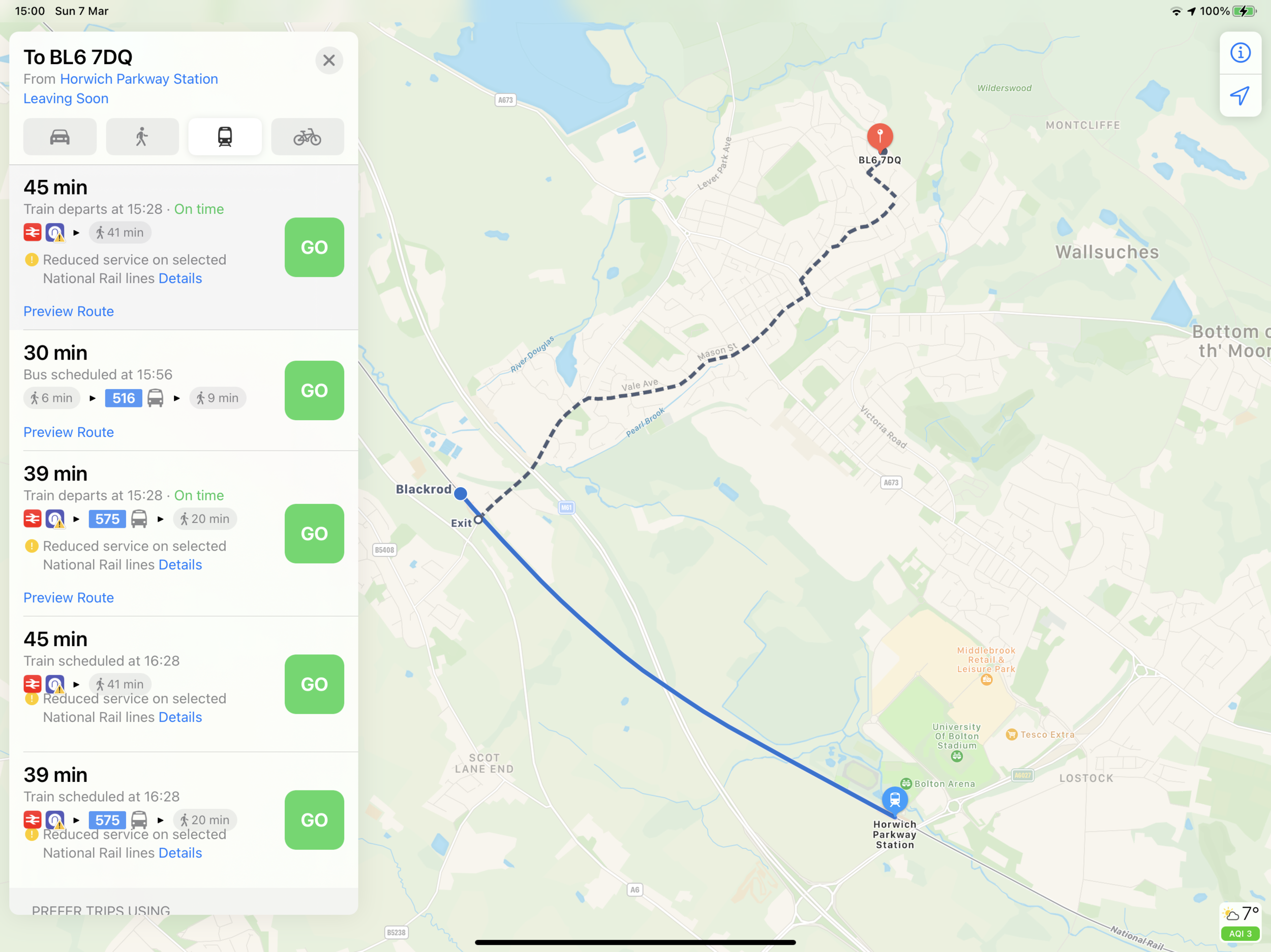 I go so early because Horwich Parkway station is so busy that you can’t park there any later than 7am. It’s on the boundary for TfGM so ticket prices are lower than the next well-serviced stop (Chorley) so people drive from Chorley, Preston and further afield to use the train. Also the neighbouring stations charge to park.